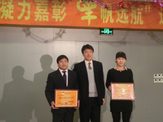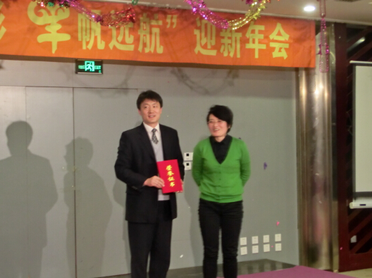 迎新年会对2014年度的先进员工举行了表扬,,,,,在会场宣读了沈阳Pa旗舰厅官网《关于2014年先进表扬的决议》,,,,,并向先进团队和小我私家揭晓了奖状,,,,,同时建议各人学习先进、时刻以先进为模范,,,,,发挥模范在生产、生涯中的刊行动用,,,,,在公司形成“赶、学、比、超”的良性竞争规模。。。。。。。
