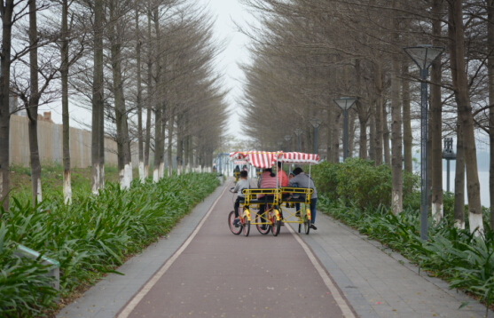 品尝美食后,,,,,前往海珠区生物岛,,,,,最先自行车环岛之旅。。。。。各人各自租个自行车,,,,,骑上环岛嬉戏,,,,,既能磨炼身体,,,,,又能鉴赏到漂亮的江景,,,,,真是再惬意不过!各人以为世间的一切骚动都远离而去,,,,,只剩下耳畔的风和眼前的江水。。。。。在欢喜的气氛中,,,,,我们竣事了此次愉快的运动。。。。。