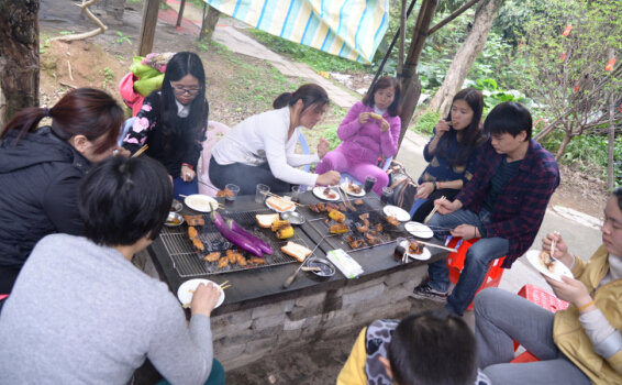 烧烤现场热闹非凡,,,,,各人配合默契,,,,,有的穿串、有的烤制,,,,,烧烤配料和零食富厚多样,,,,,各人在一片欢声笑语中配合品尝美食。。。。。