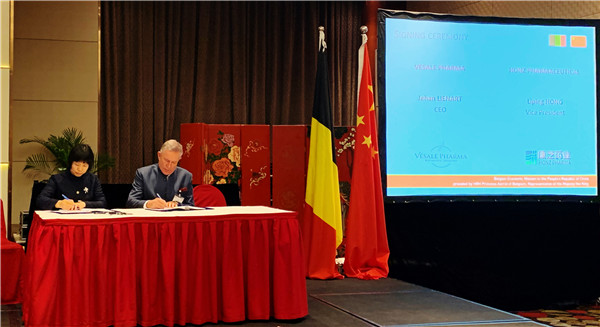 ¡÷PaÆì½¢Ìü¹ÙÍøÒ©Òµ¸±¶Ê³¤¼æ¸±×ܲúéÀöƼ(×ó)ÓëV¨¦sale Pharma¹«Ë¾¶Ê³¤Jehan Lienart(ÓÒ)Ç©ÊðÐÒé