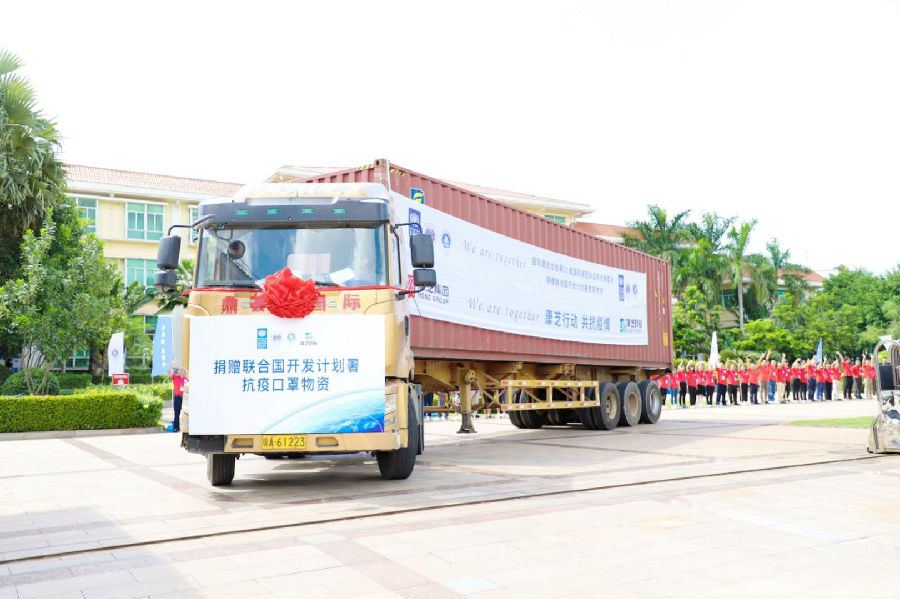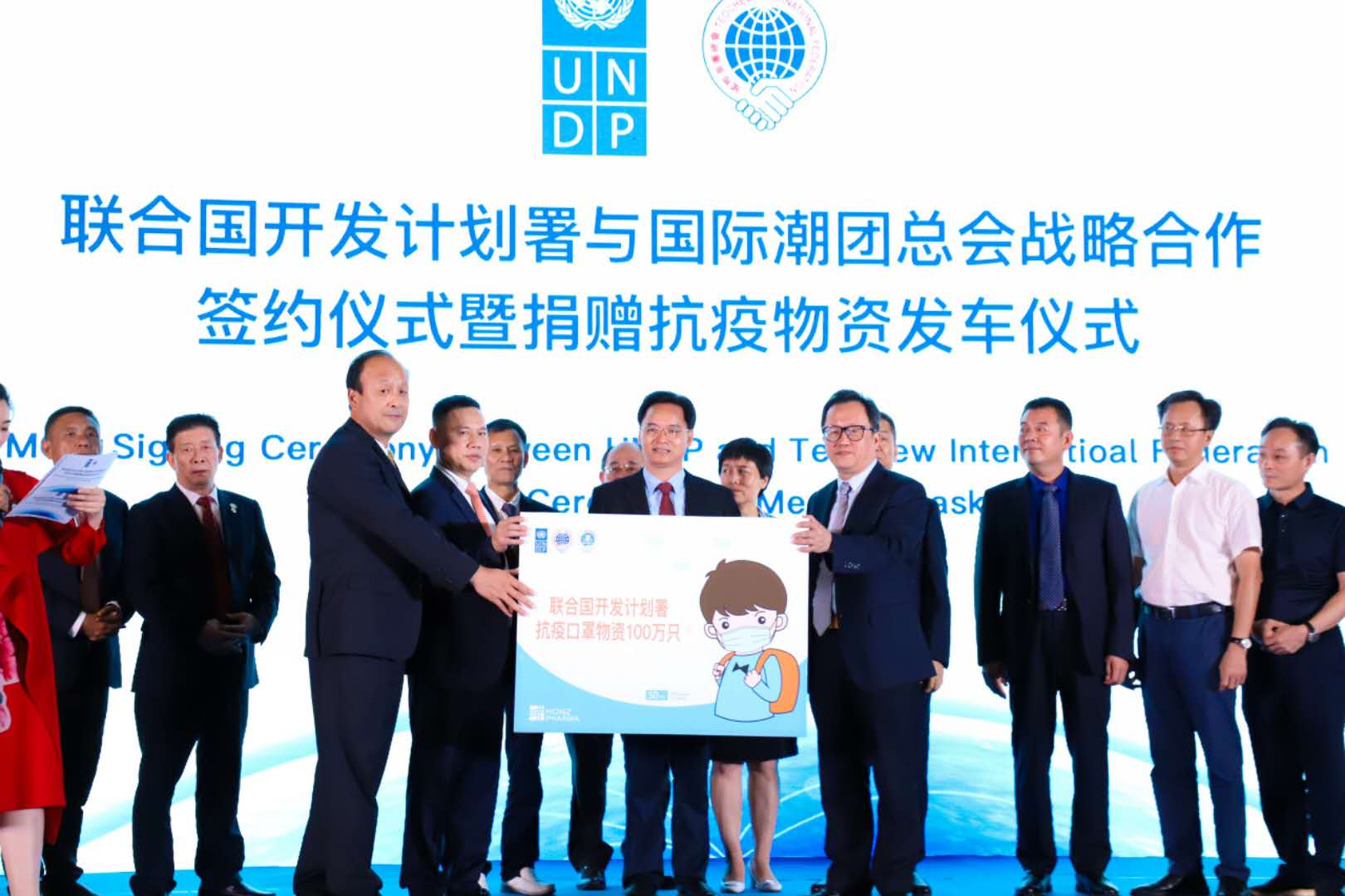 923日 ,,,,,,团结国开发妄想署与国际潮团总会战略相助签约仪式暨捐赠抗疫物资发车仪式在Pa旗舰厅官网药业海南总厂圆满举行。。。。。。。由Pa旗舰厅官网药业生产的切合团结国受捐标准的100万只口罩顺遂交到国际潮团总会手中 ,,,,,,承载着全球潮人和Pa旗舰厅官网人爱心的抗疫物资车已温暖出发。。。。。。。