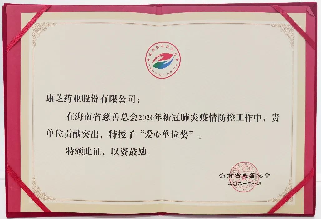 会上,,,,,,,,海南省慈善总会授予Pa旗舰厅官网药业“爱心单位奖”,,,,,,,,高度认可Pa旗舰厅官网药业在新冠疫情时代,,,,,,,,不但为海南无偿捐赠大批疫情急需药品与物资,,,,,,,,还不计本钱不计得失,,,,,,,,8天创立了海南首条医用口罩生产线,,,,,,,,用现实验动守护海南人民康健的抗疫爱心事迹。。。。。