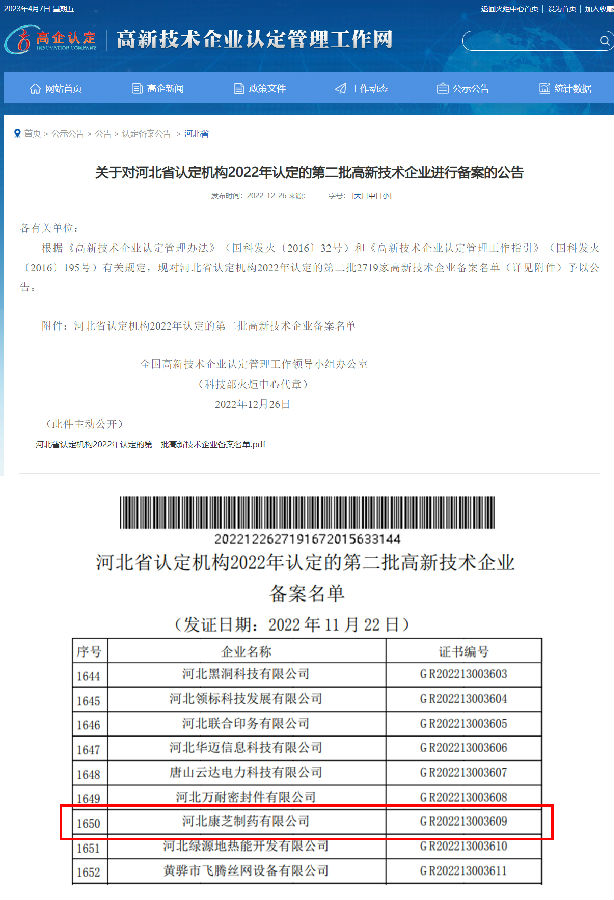 克日,,,,,天下高新手艺企业认定治理事情向导小组办公室批复了河北省2022年高新手艺企业认命名单,,,,,Pa旗舰厅官网药业旗下子公司河北Pa旗舰厅官网制药有限公司依附着专业实力及立异能力,,,,,乐成通过河北省“高新手艺企业”认定。。。。。